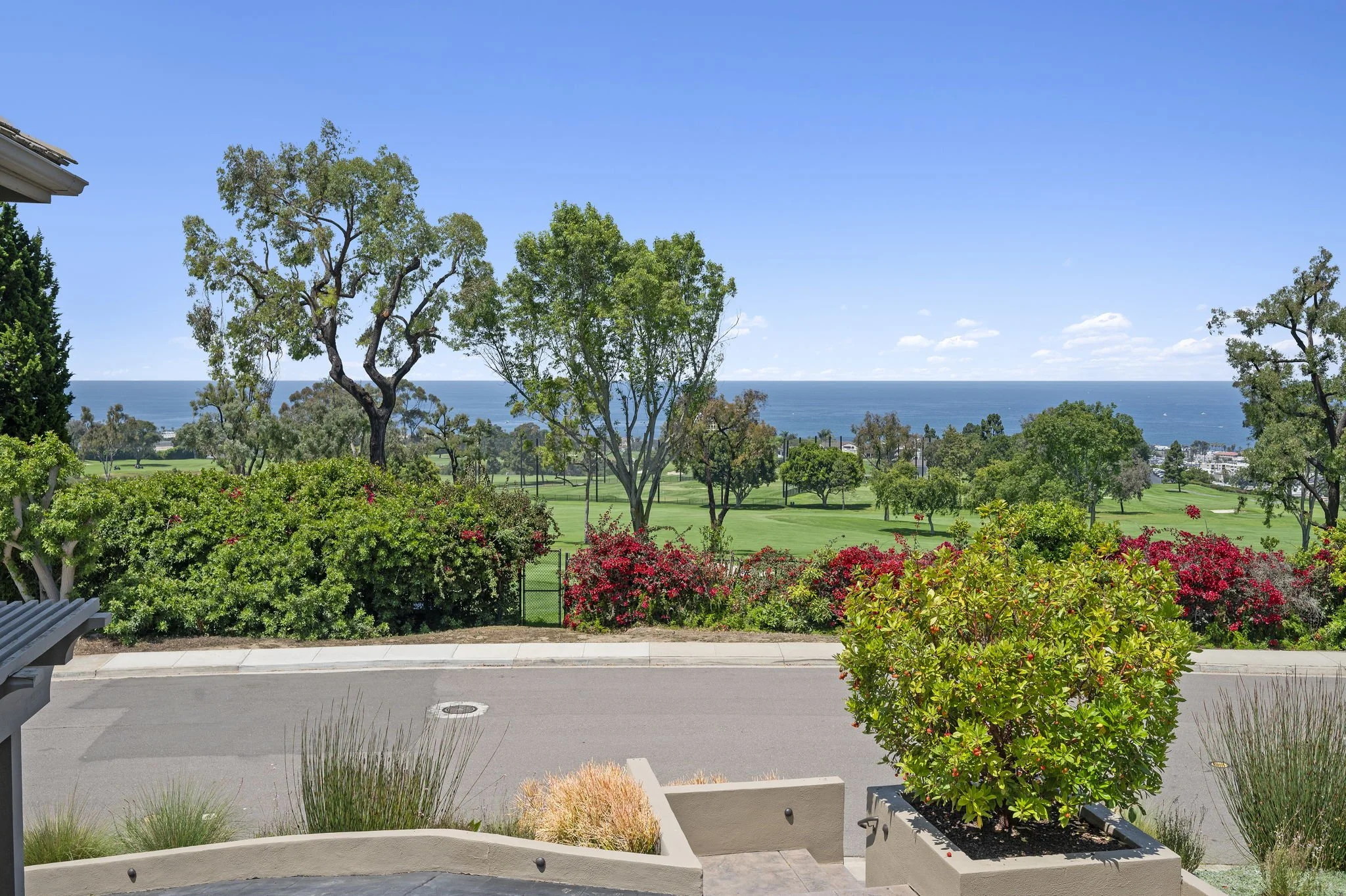 With stunning views across the fairways of La Jolla Country Club to the Pacific, this beautifully-designed home is situated on an exceptional lot along prestigious Fairway Road. Past the covetous circular driveway lies a meticulously-maintained home bathed in natural light. Soaring ceilings, expansive windows, and functional design create both a voluminous and welcoming atmosphere. An ideal floorplan features four spacious ensuite bedrooms, separate dining and living rooms, and an impressive library/den with rich wood paneling, high ceilings, and cozy fireplace. The lovely primary suite offers stunning views, a large walk-in closet, and bath with skylights and numerous windows. An adjacent office overlooks a serene backyard waterfall. Expansive private patios offer numerous spaces for entertaining and relaxation with mature trees and vibrant landscaping. An upper flat garden area would be perfect for a future pool/cabana, sports court, or even a guest house with views.